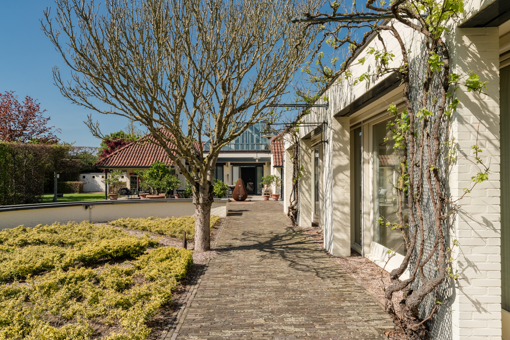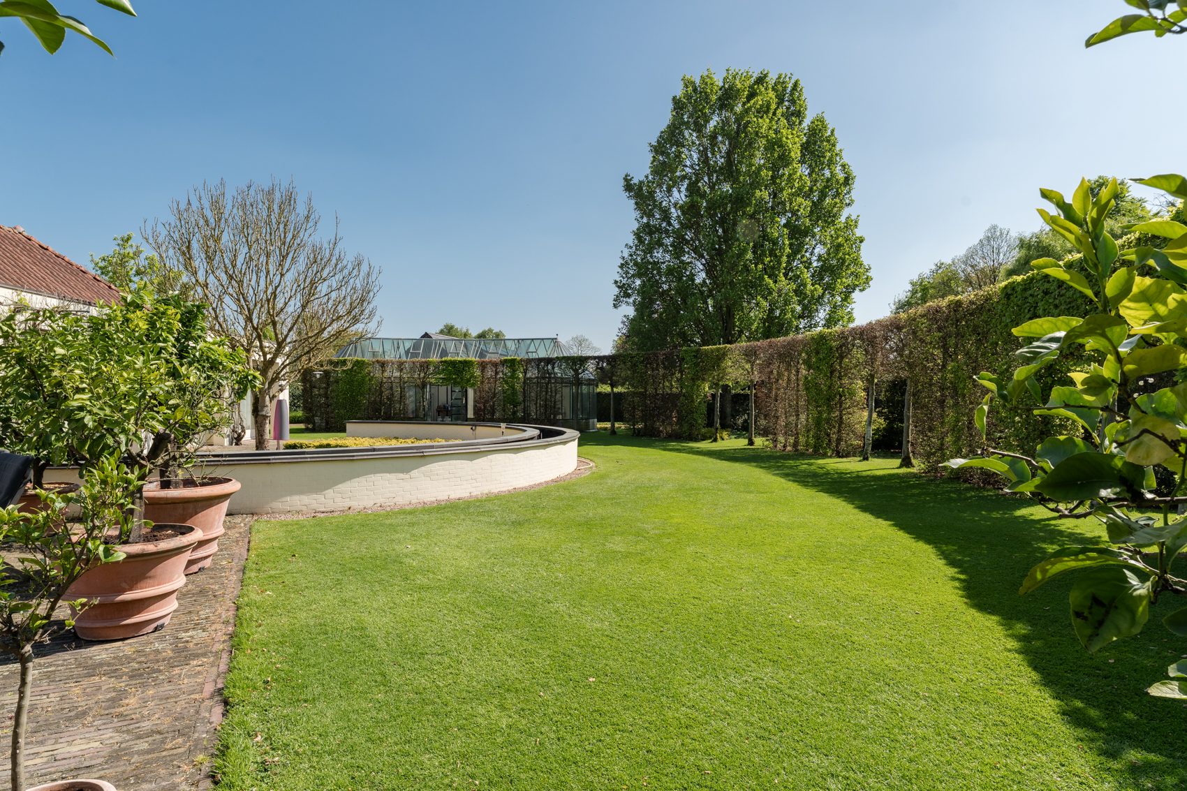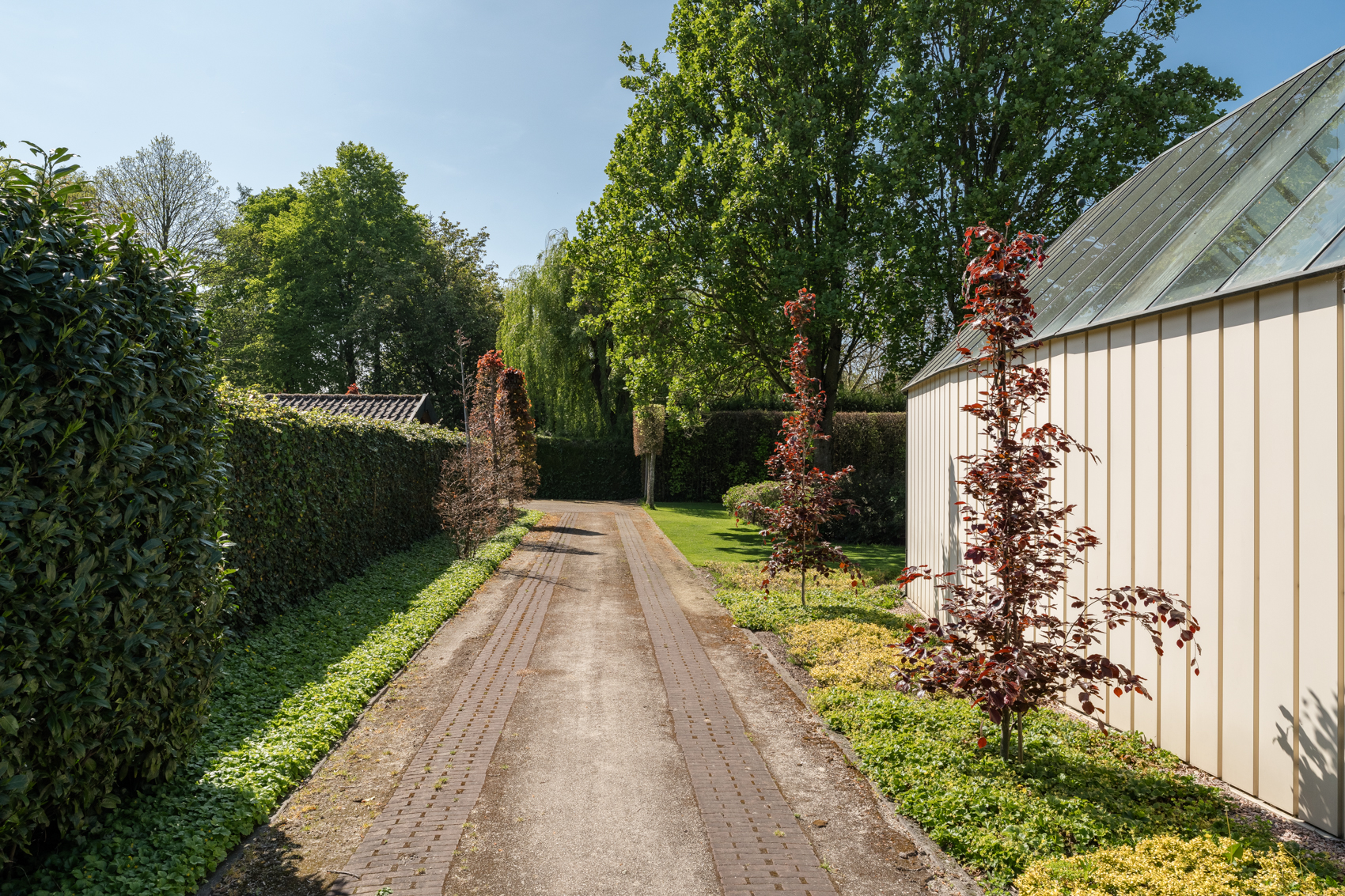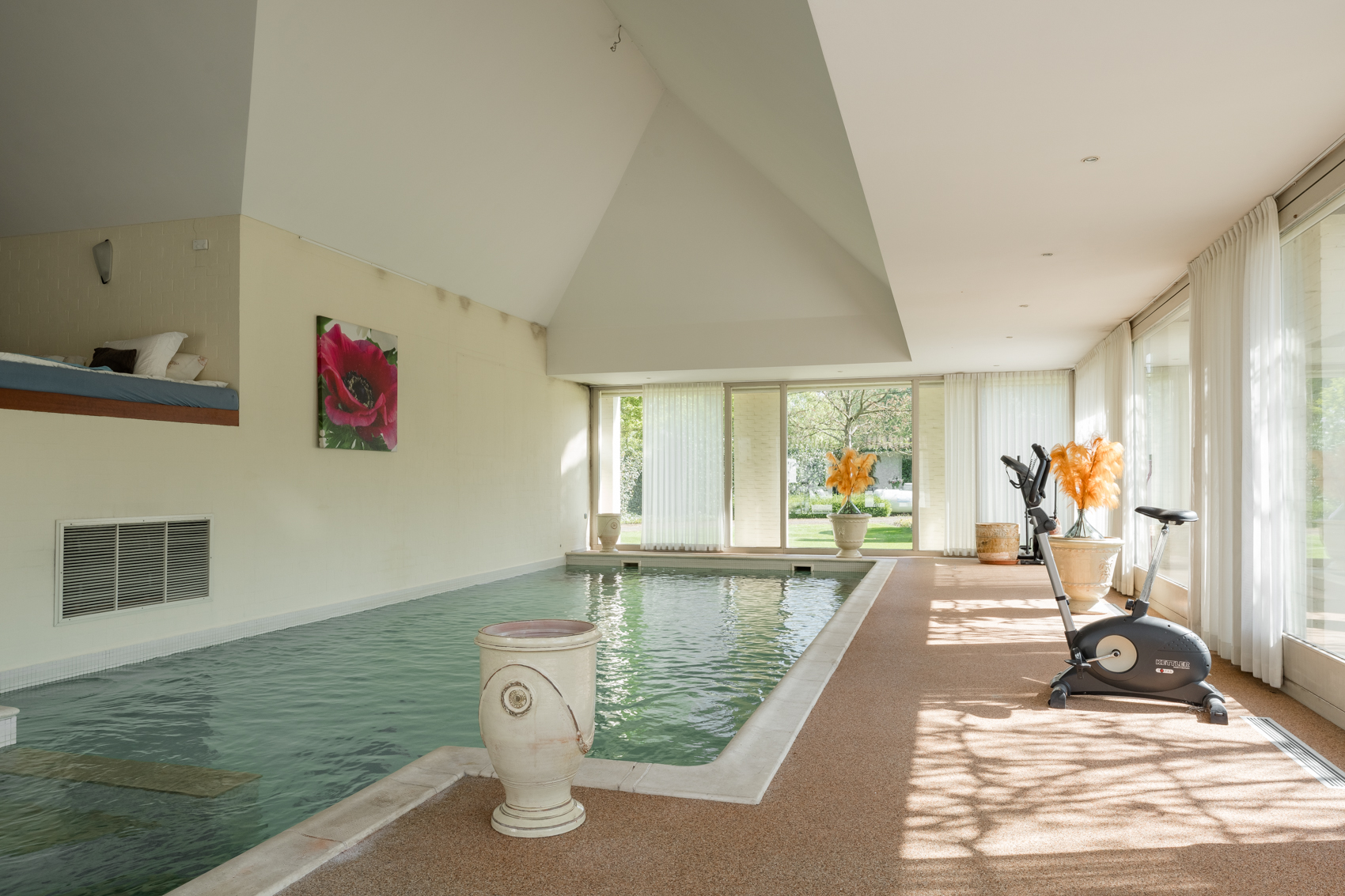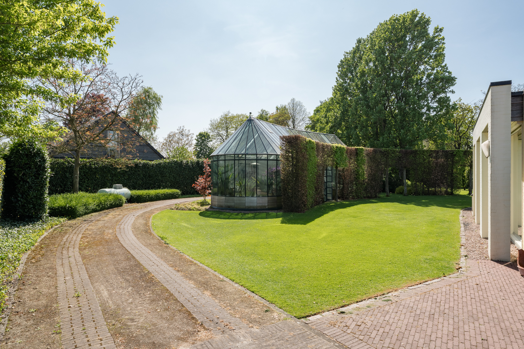 + Vergund bijgebouw, nu vooral garage en binnenzwembad, maar met potentie tot meer