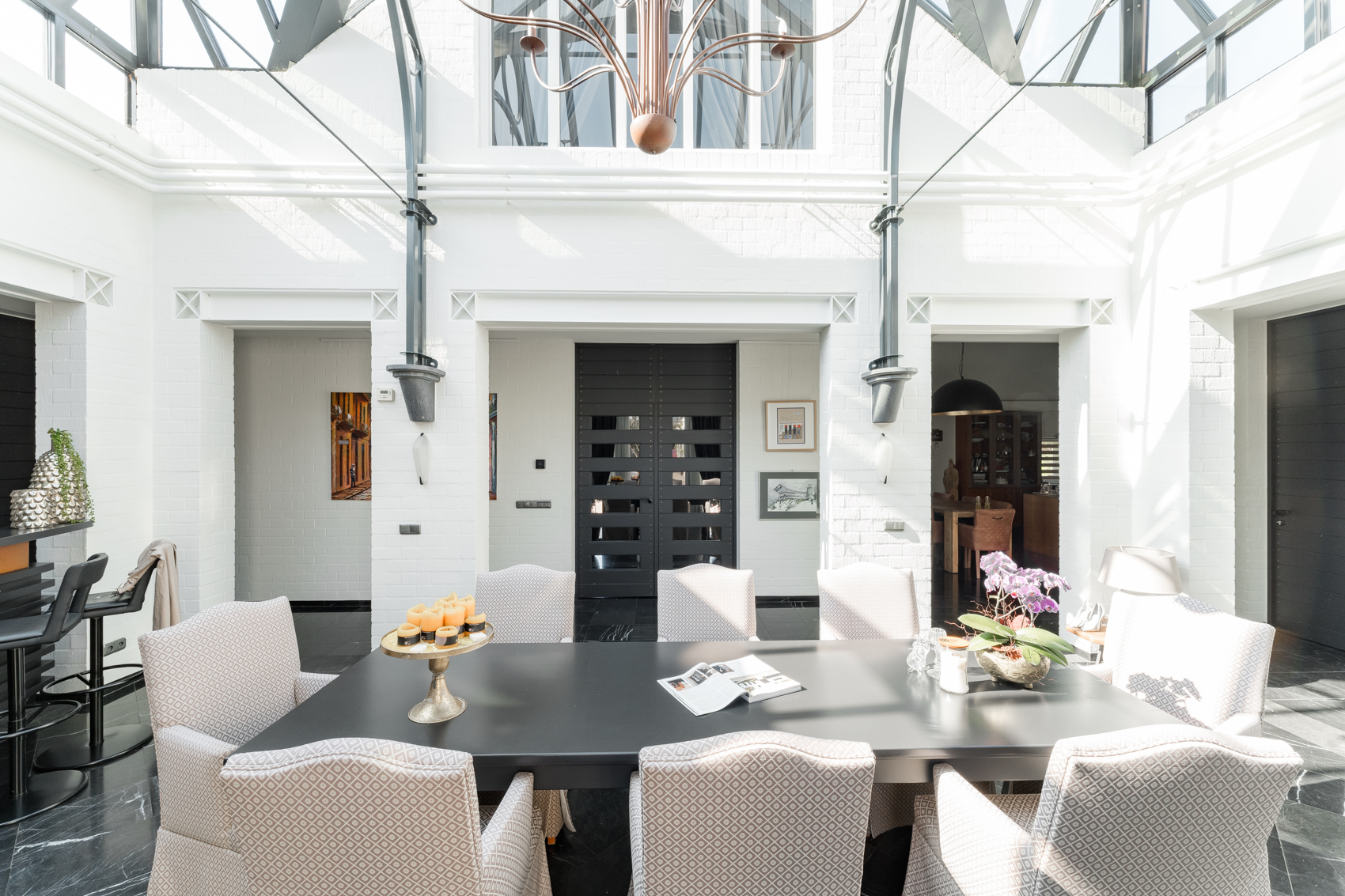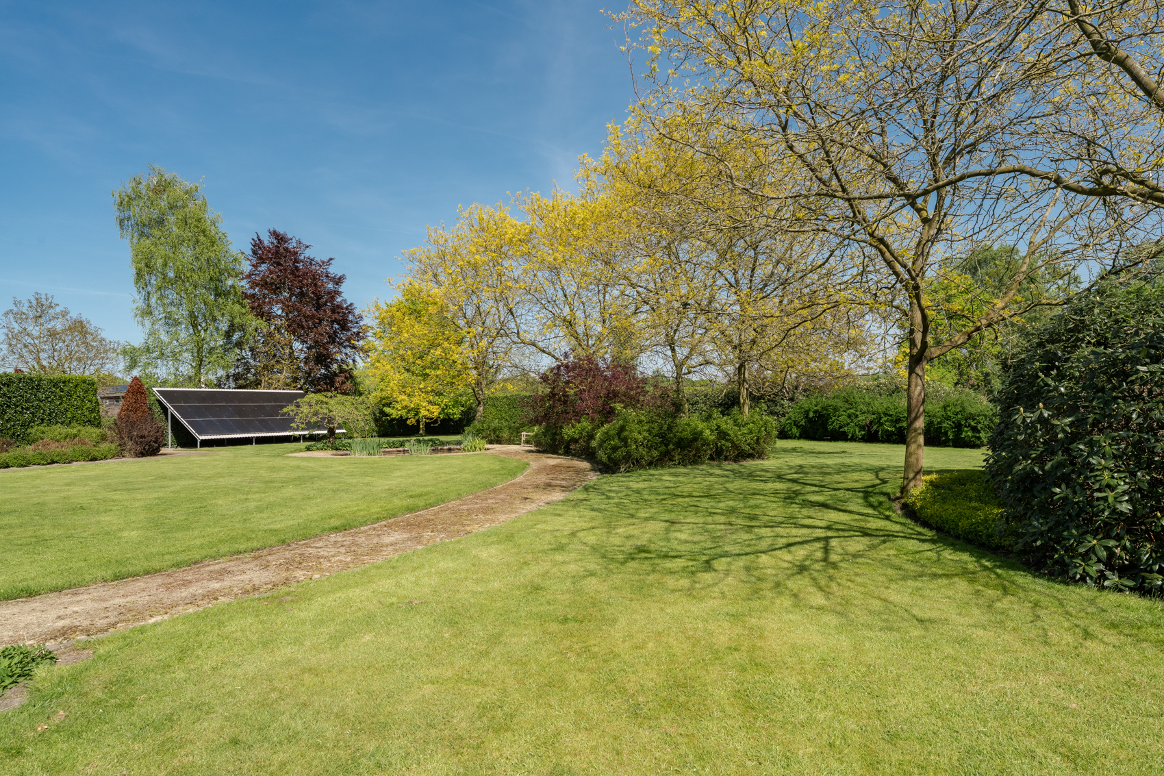 Charmante, sfeervolle, lichtrijke, energievriendelijke (EPC B), zeer goed onderhouden villa met grote leefruimte, apart bijgebouw met ruime garage voor meerdere auto’s en binnenzwembad en wellness & zeer romantische parktuin op zuiden met meerdere (overdekte) terrassen, ruim 275 m2 woonoppervlakte, op een landgoed van 77a 71ca (7771 m2) in nette en rustige straat nabij de dorpskern van Achel, net over de grens bij Valkenswaard. Privacy en rust gegarandeerd!