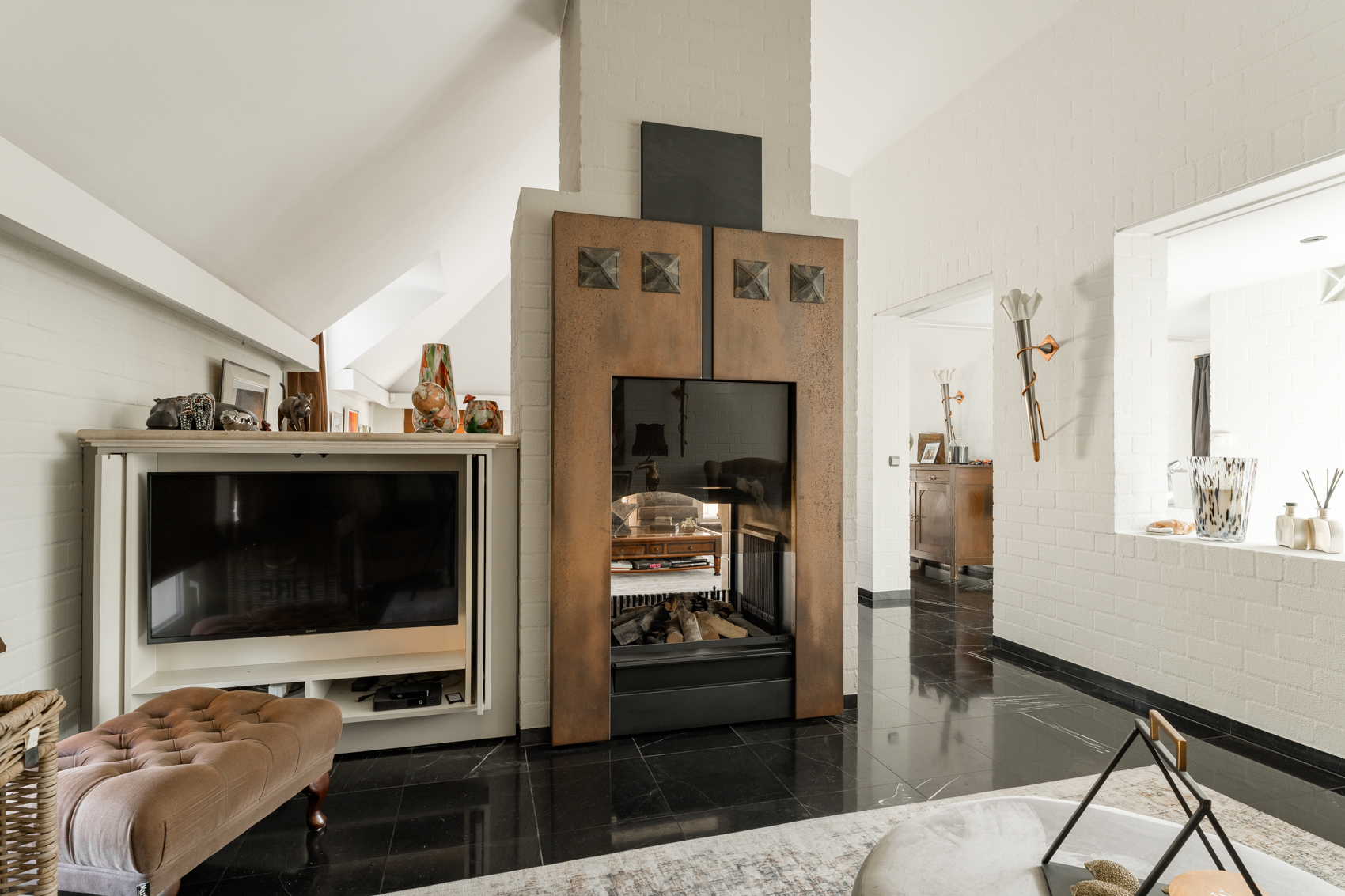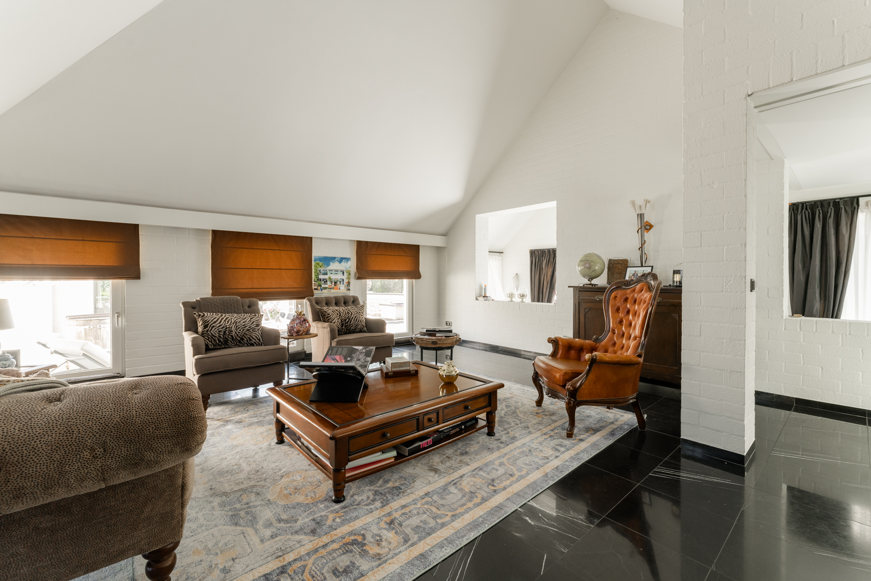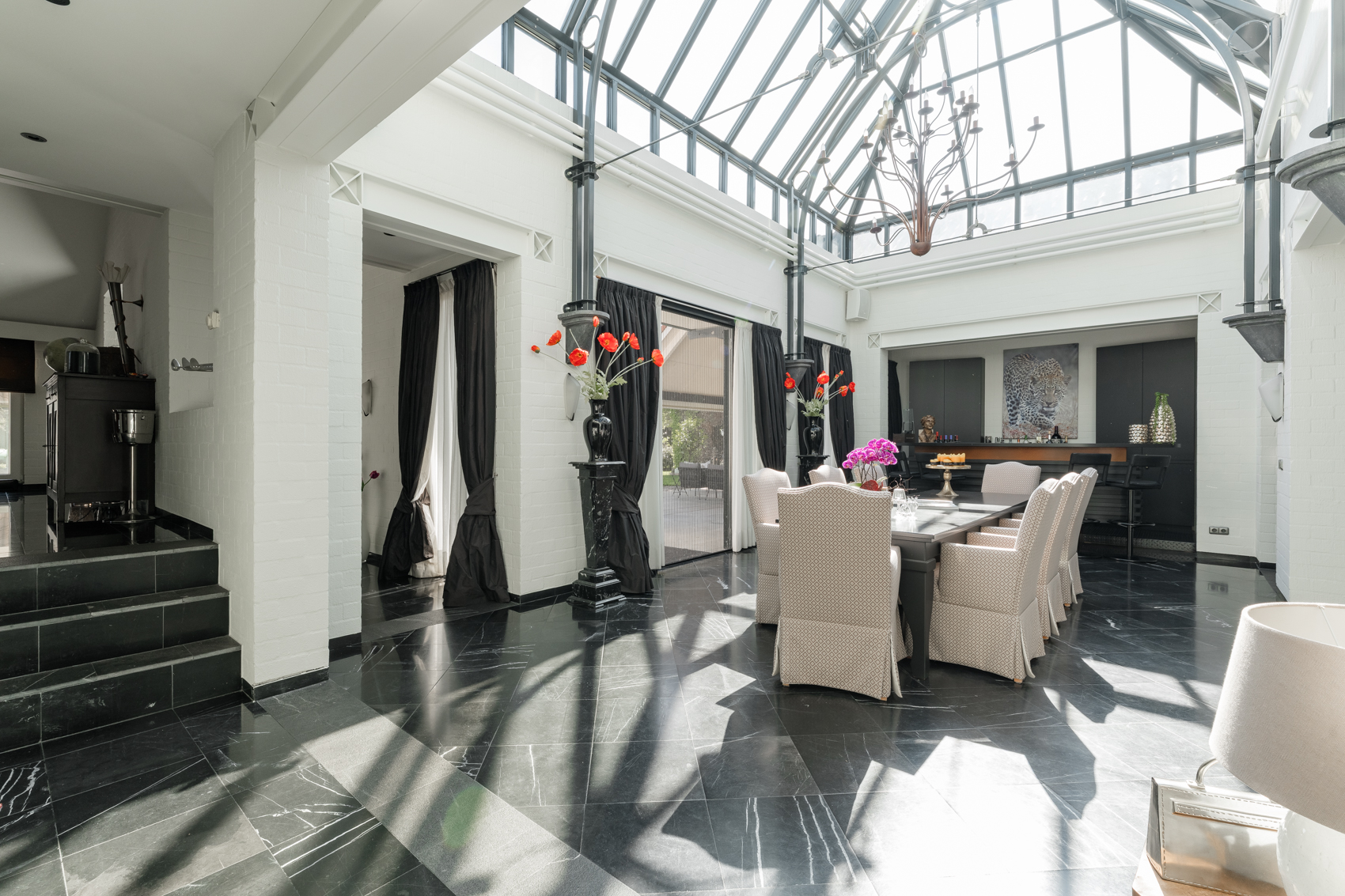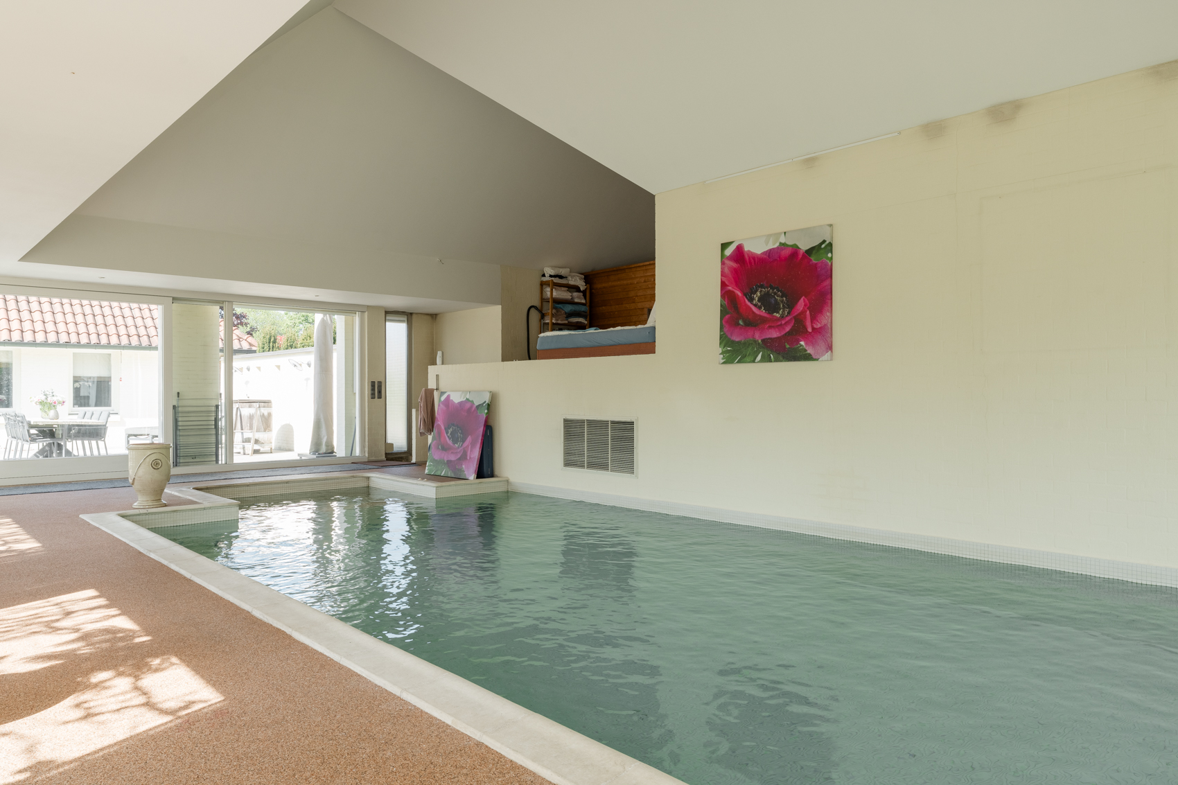 Daarnaast is de woning luxe afgewerkt en voorzien van o.a. een alarminstallatie, stofzuiginstallatie, airco slaapkamer, natuurstenen materialen, binnenzwembad, inpandige garage, gezellige woonkamer met prachtige vloer en gashaard.