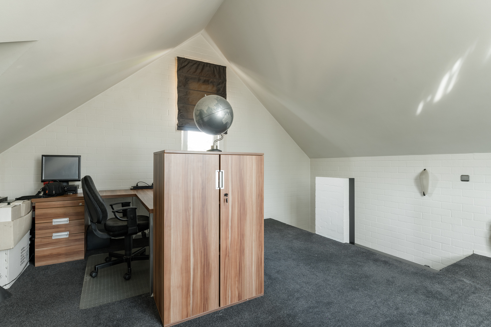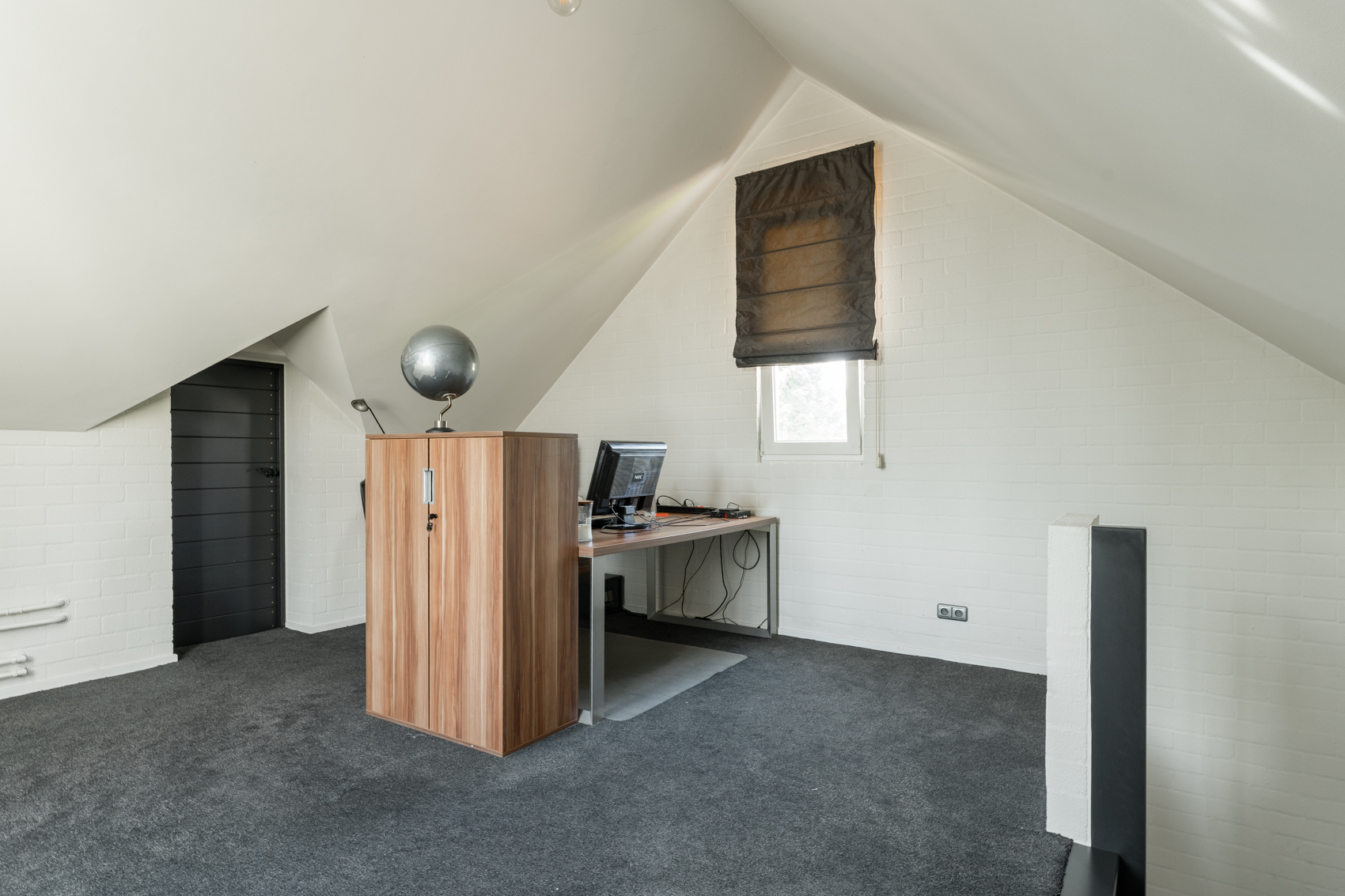 Op de eerste verdieping is er ruimte aan de voorkant die dienst kan doen als bureau en/of logeerkamer en is er een zolderruimte.