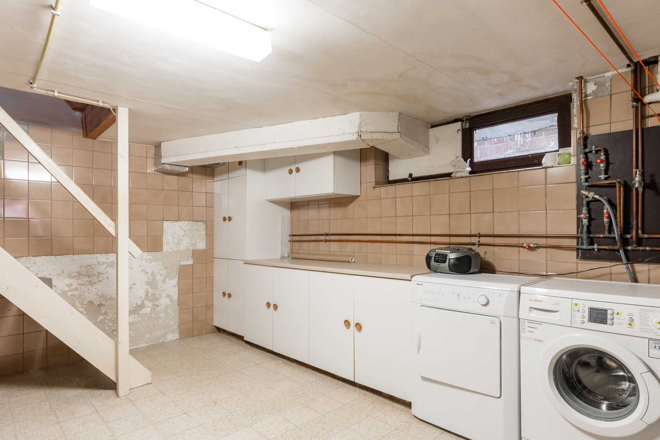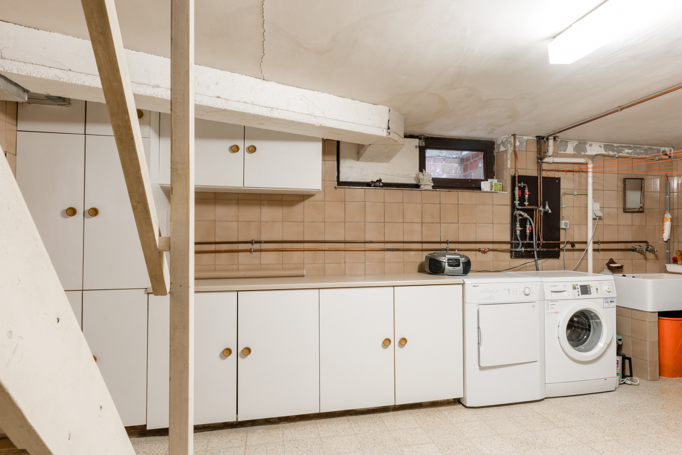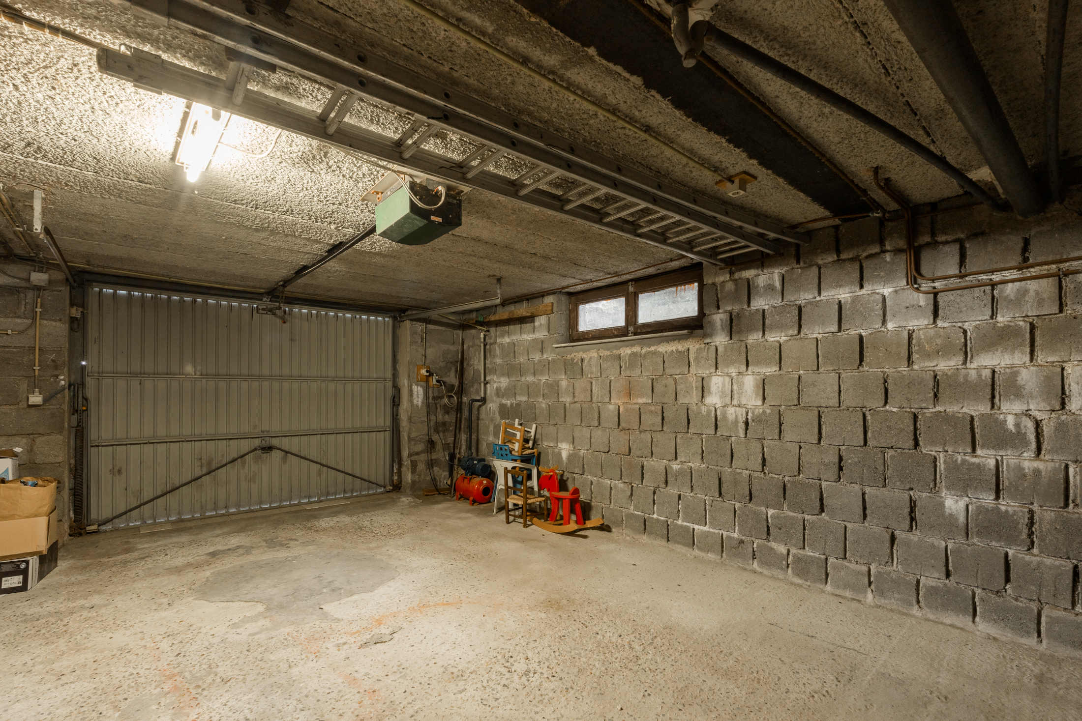 + Ruime kelderetage met wasberging, verwarming, voorraadkelder, werkkelder en inpandige garage