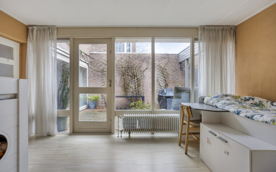 Doordat deze overdekt is, geeft dit mogelijkheden om een sfeervolle binnentuin t creeeren waar je ’s zomers en ’s winters van kunt genieten. Vanaf de patio is tevens de berging bereikbaar. Deze ruimte zou ook eventueel als uitbouw van de woning gebruikt kunnen worden, of voor eventueel een badkamer of extra ruimte op de begane grond.