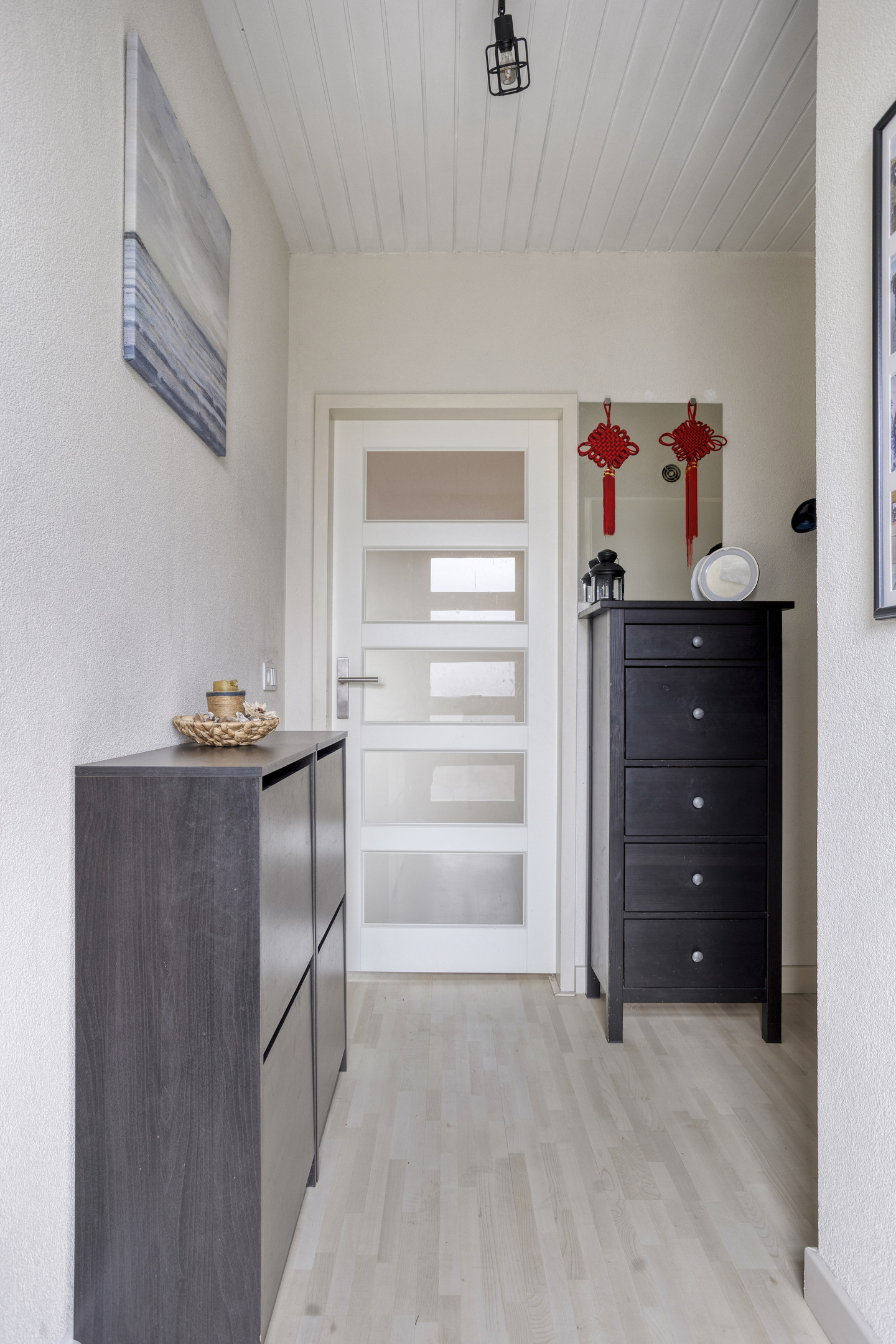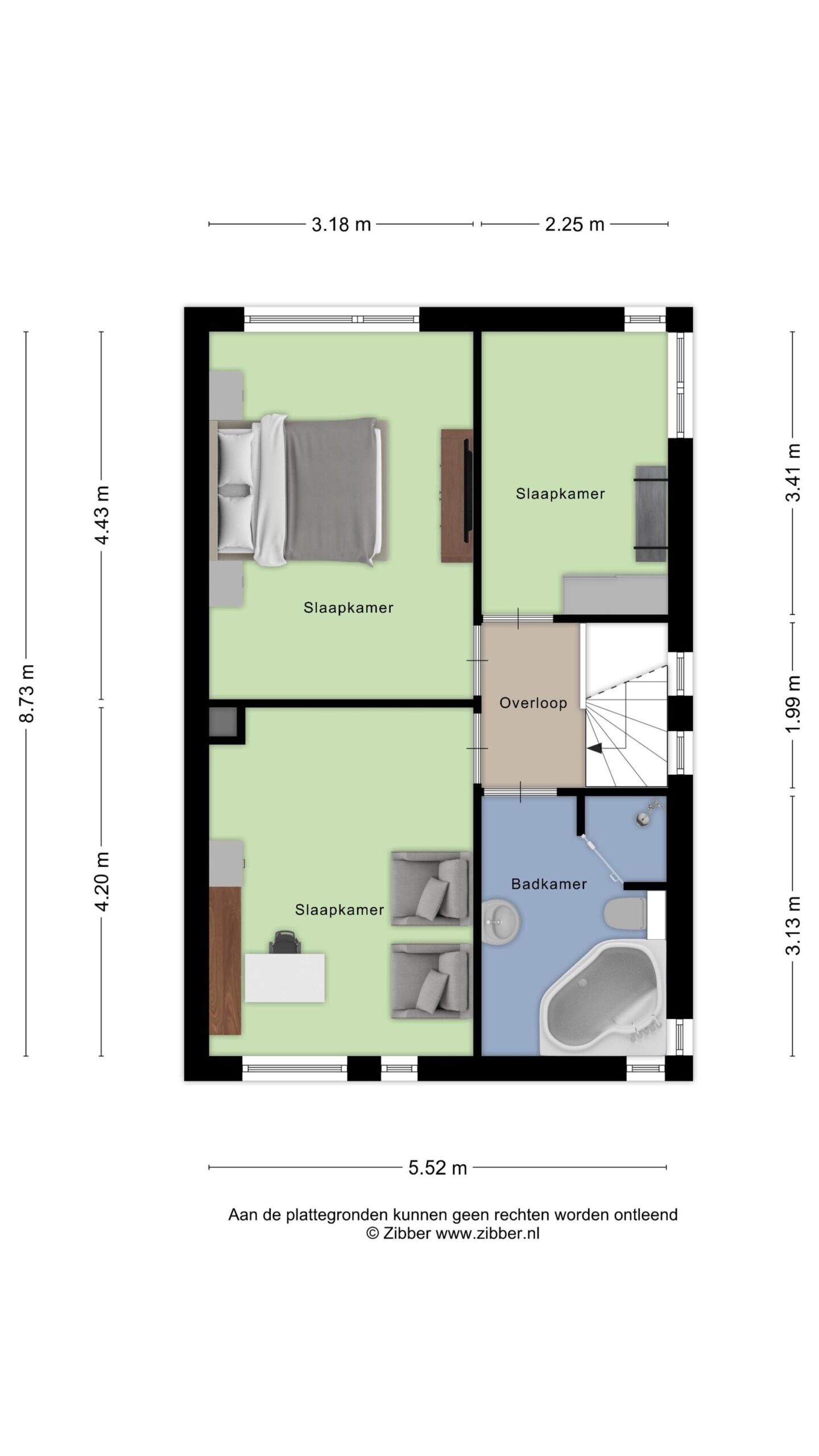 De overloop biedt toegang tot de 3 slaapkamers en de badkamer.