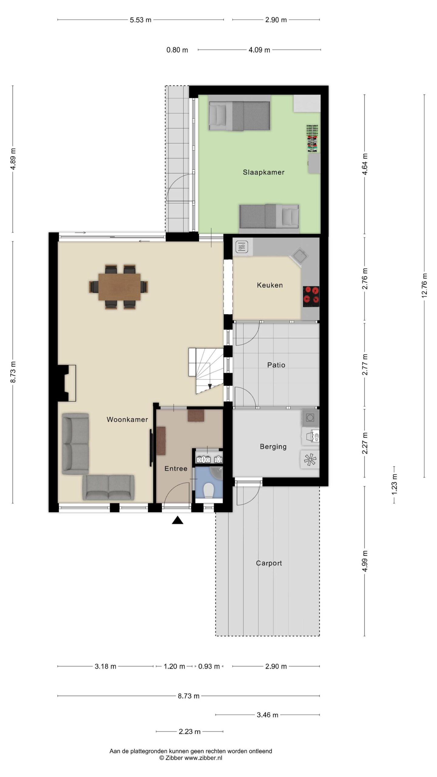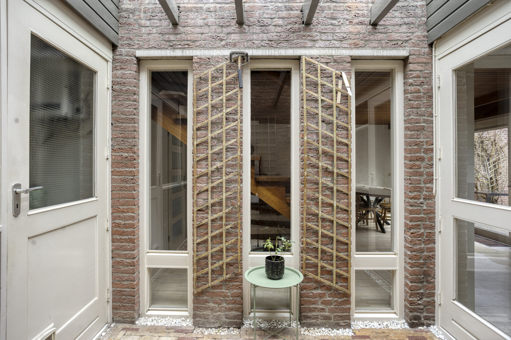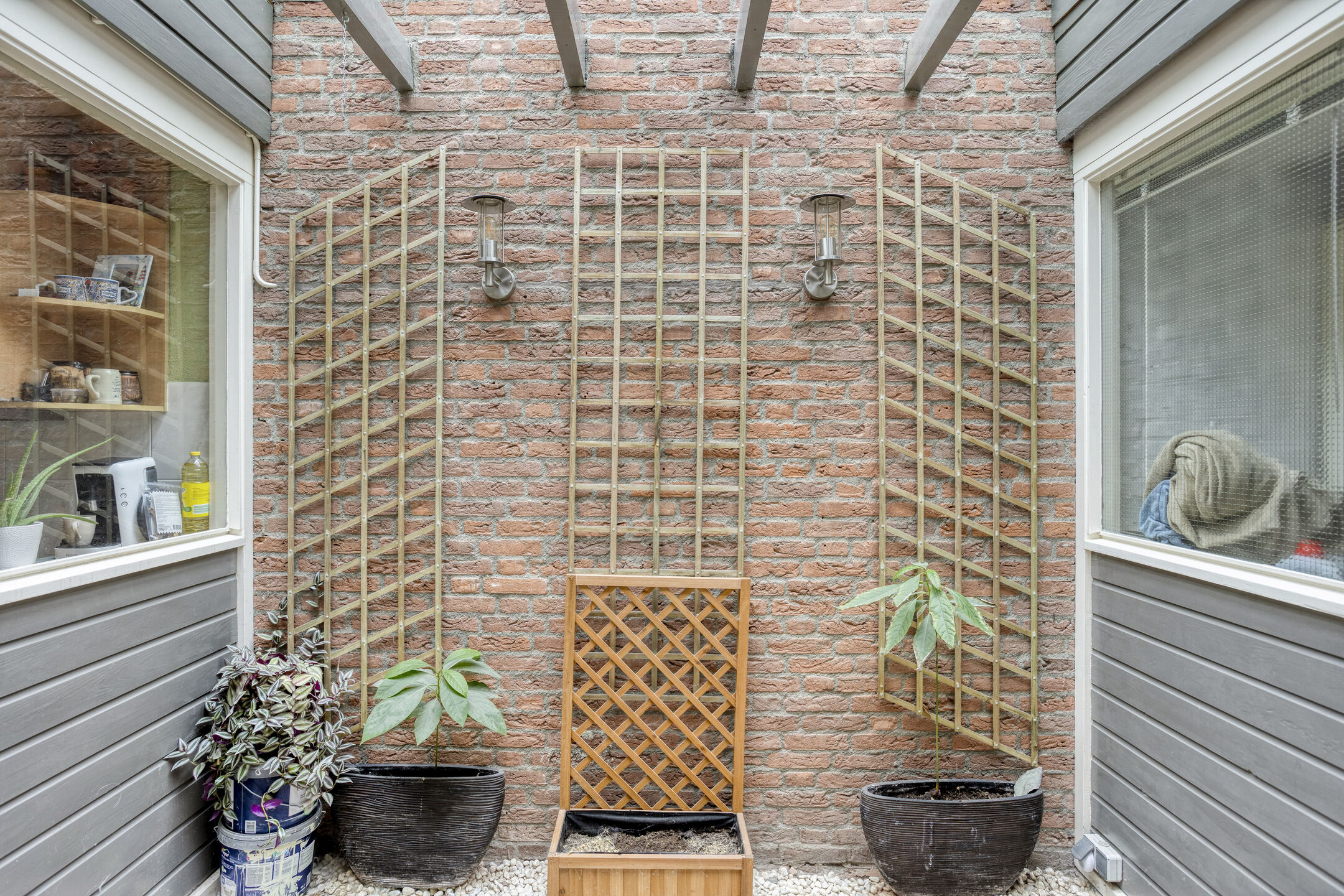 Doordat deze overdekt is, geeft dit mogelijkheden om een sfeervolle binnentuin t creeeren waar je ’s zomers en ’s winters van kunt genieten. Vanaf de patio is tevens de berging bereikbaar. Deze ruimte zou ook eventueel als uitbouw van de woning gebruikt kunnen worden, of voor eventueel een badkamer of extra ruimte op de begane grond.
