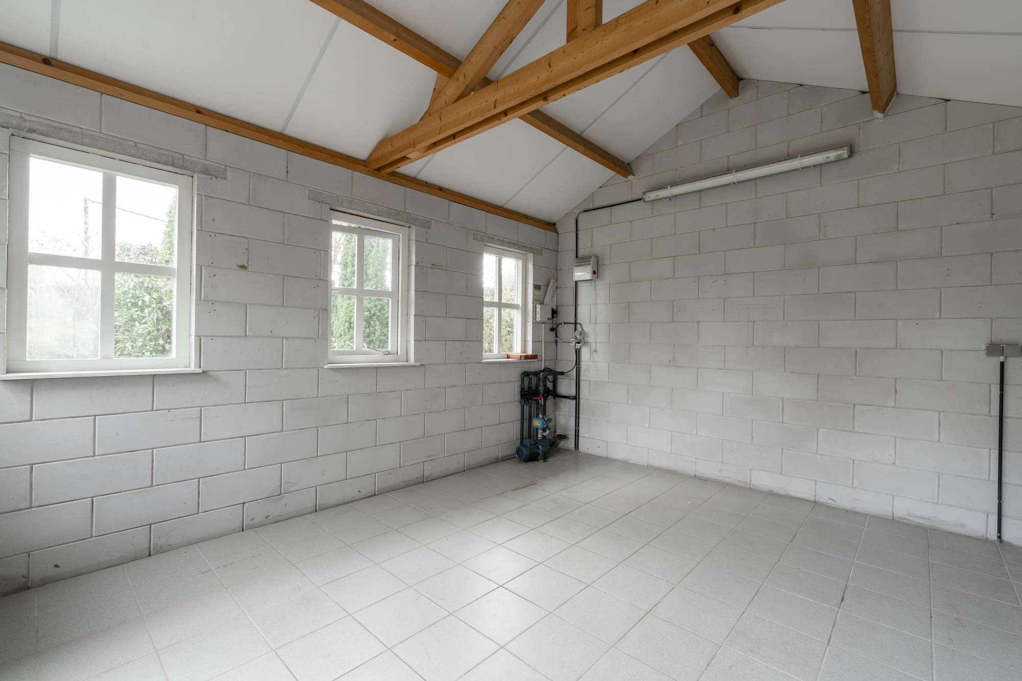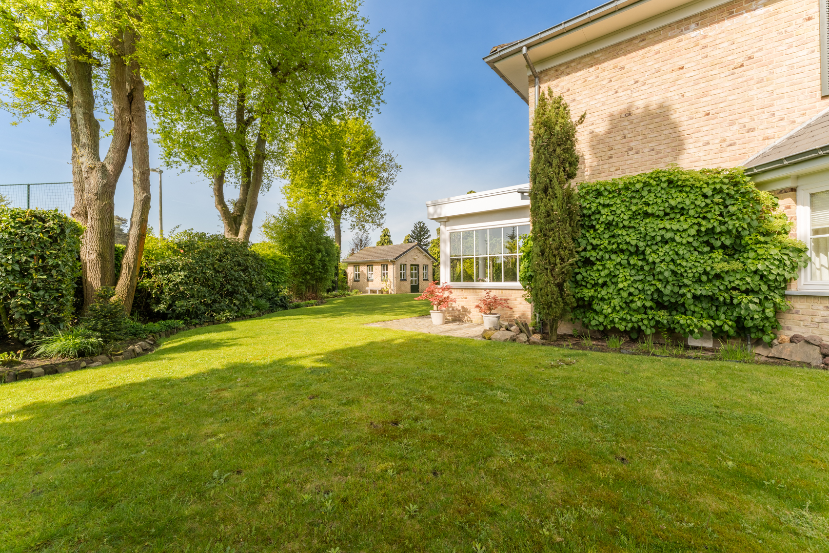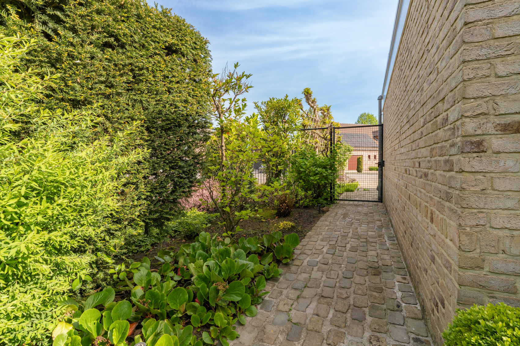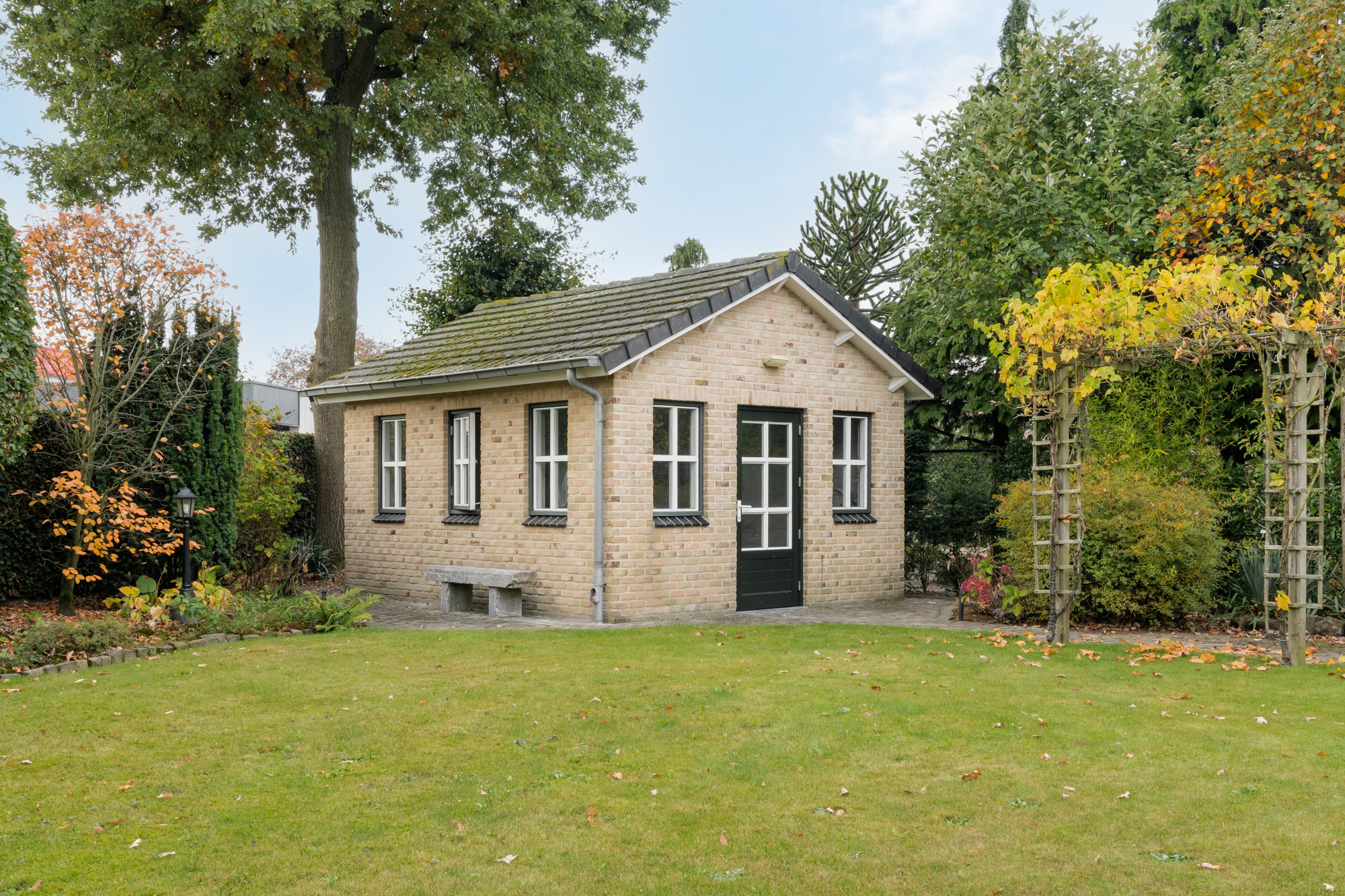 Tevens is er een ruim tuinhuis met veel opbergmogelijkheden, maar ook met voorzieningen om er bijvoorbeeld een atelier, fitness of wellness van te maken. Het tuinhuis herbergt een automatische beregeningsinstallatie op grondwater met 4 circuits voor alle tuingedeeltes. Het groen in de voor- en zijtuin wordt automatisch ‘s avonds mooi verlicht tot aan de voordeur.