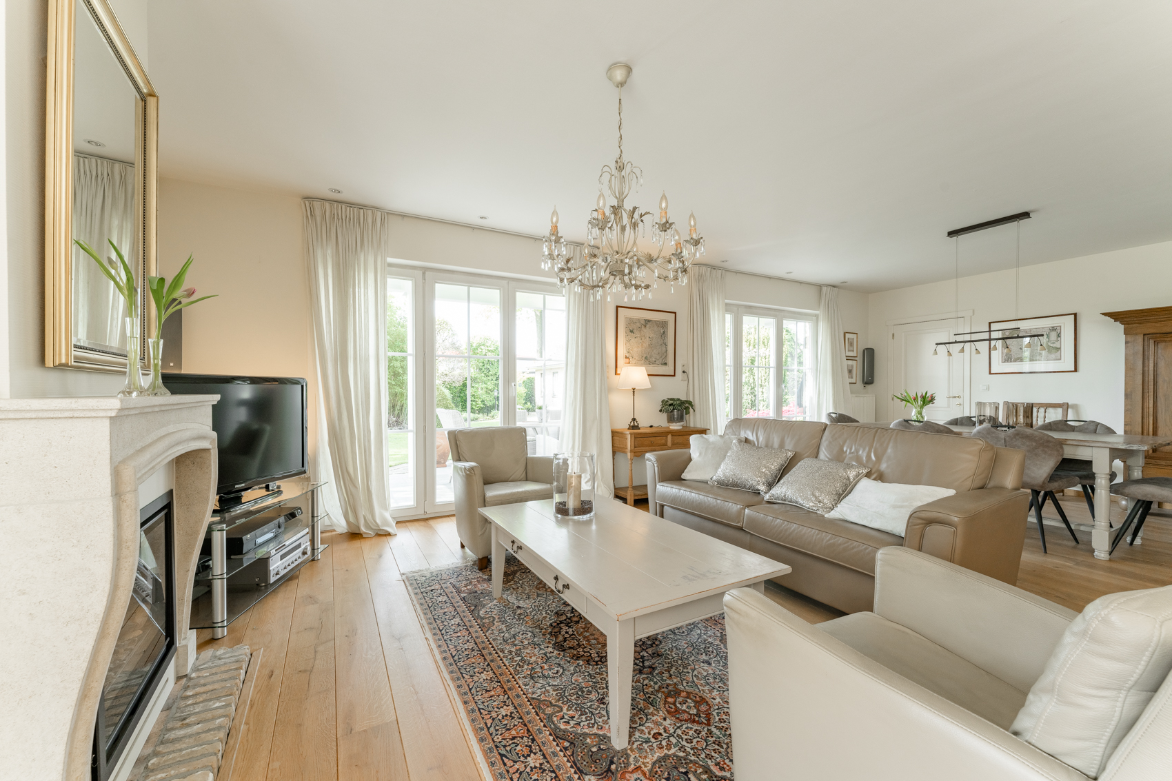 Daarnaast is de woning luxe afgewerkt en voorzien van o.a. een alarminstallatie, sierluiken, overdekt terras met lichtstraat, kasseien oprit, inpandige garage, gezellige woonkamer met massief eiken parketvloer en gashaard.