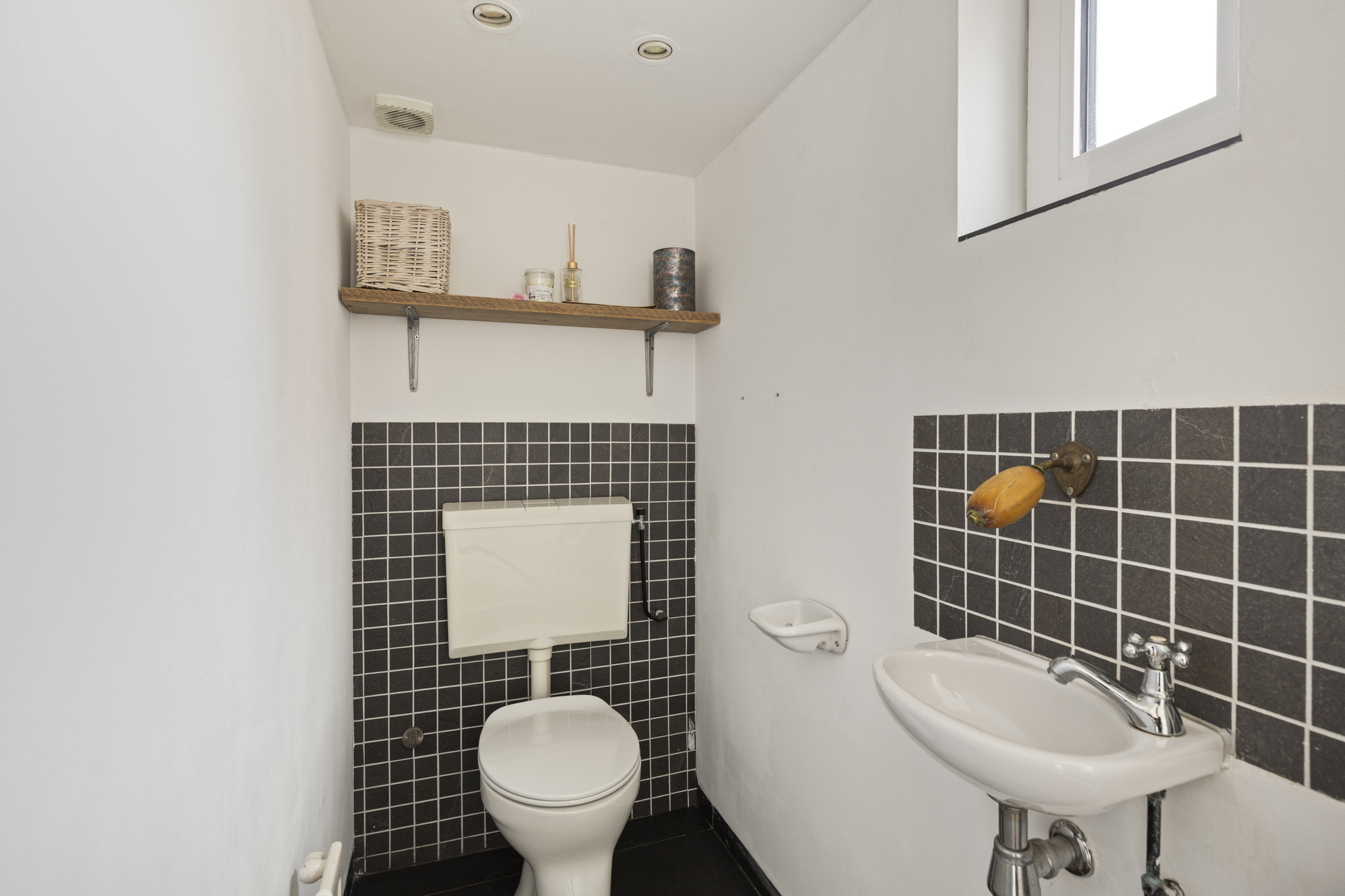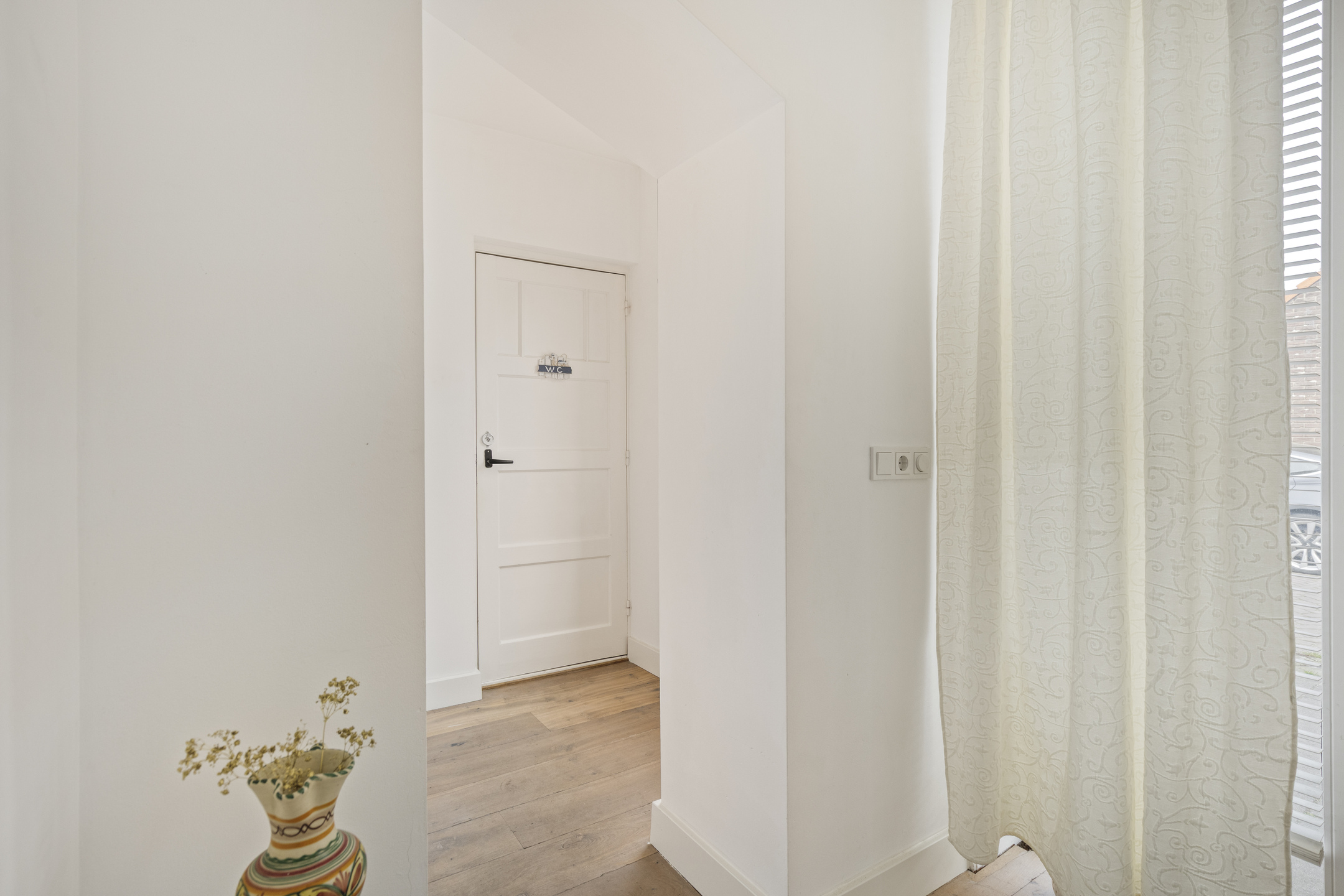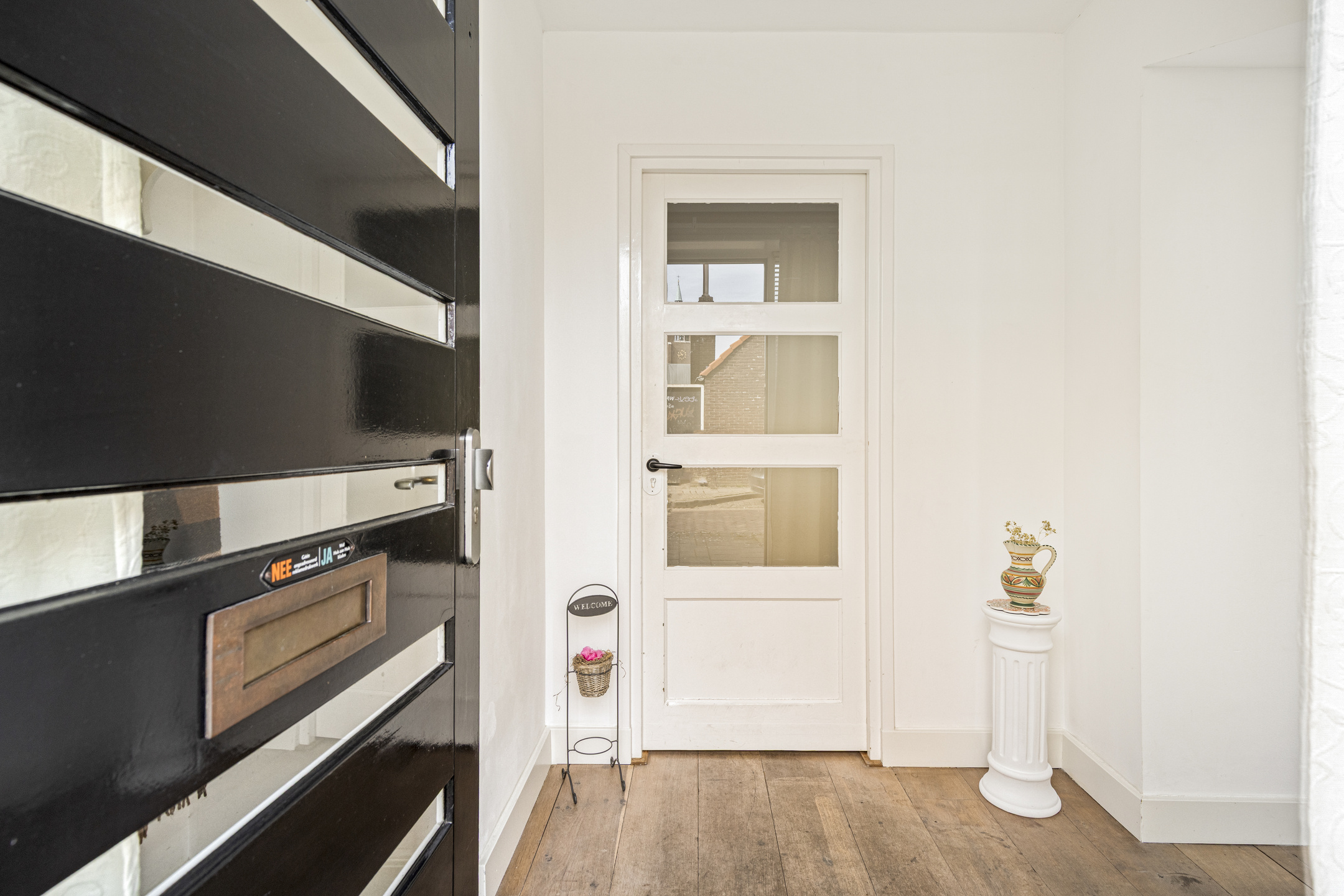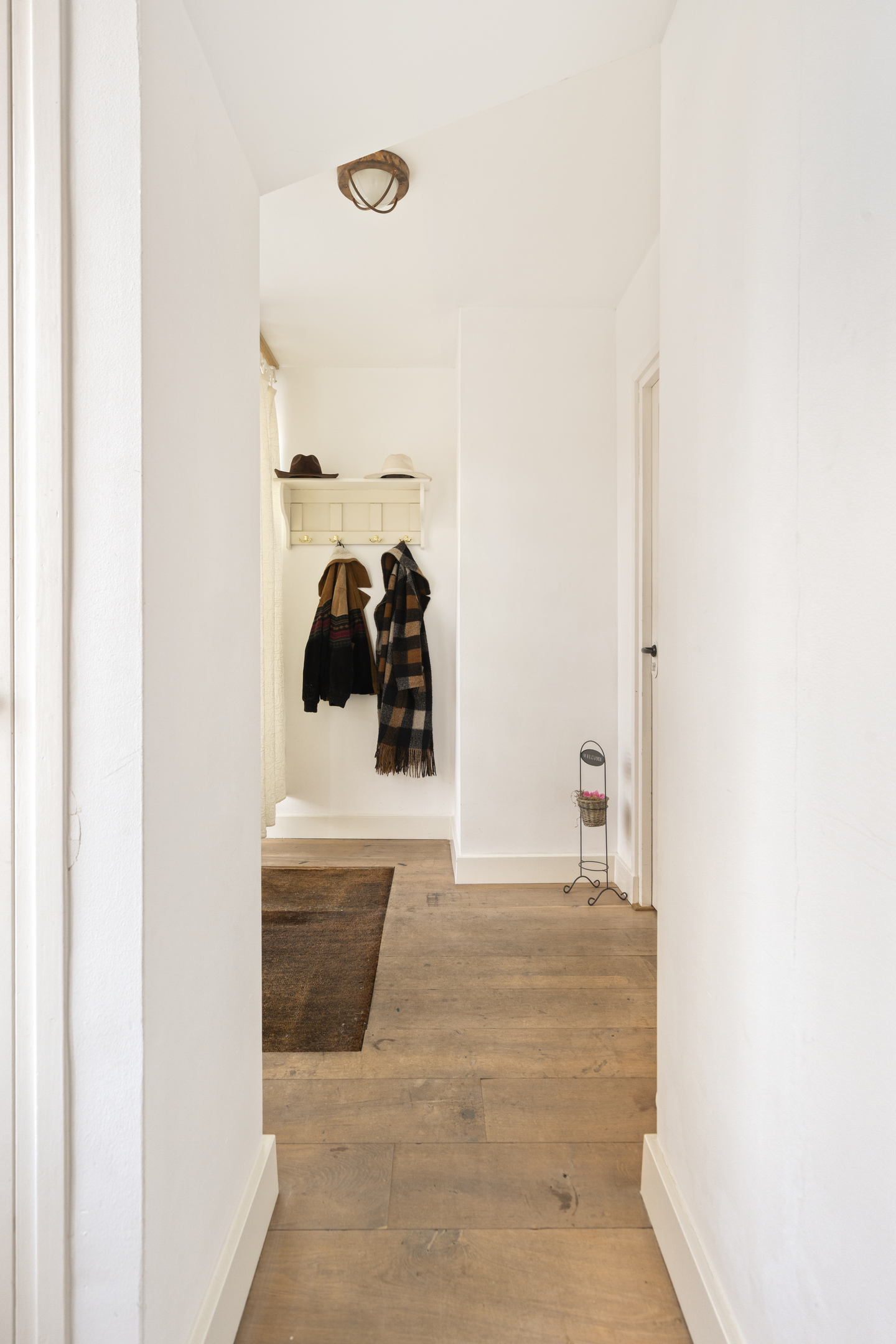 Kom binnen in een lichte, brede hal met garderobe, meterkast en toilet.