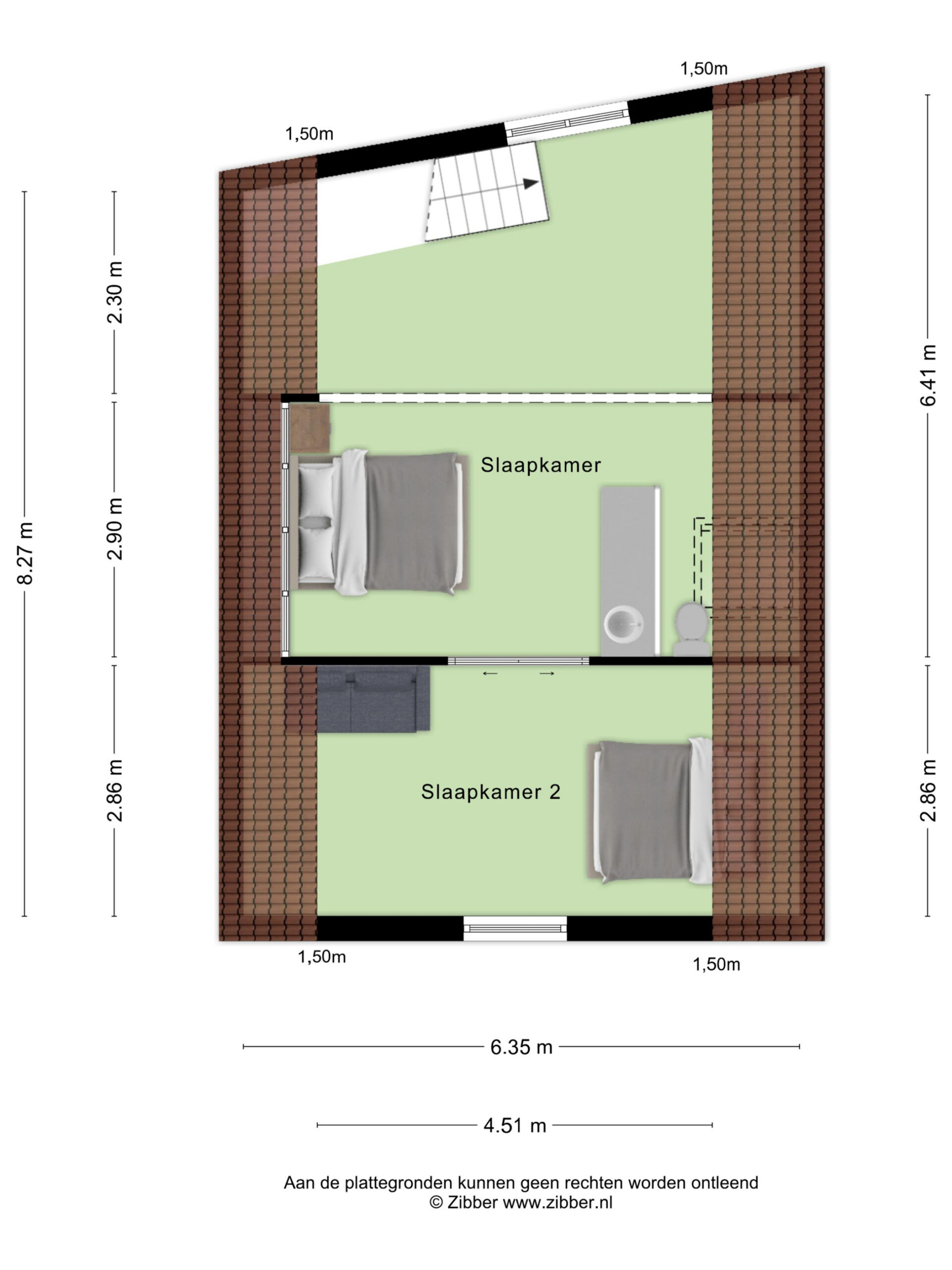 Op de verdieping bevinden zich 2 slaapkamers. De 1e slaapkamer betreft een ruime slaapkamer met dakkapel, wastafel en 2e toilet (sanibroyeur). Met plafond dat tot in de nok toe doorloopt, geeft dit een hele ruimtelijke impressie.