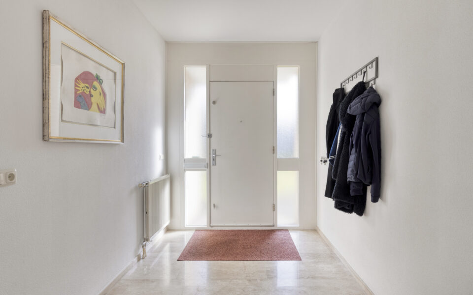 U komt binnen in de ontvangsthal met aansluitend de hal naar de slaapvleugel.