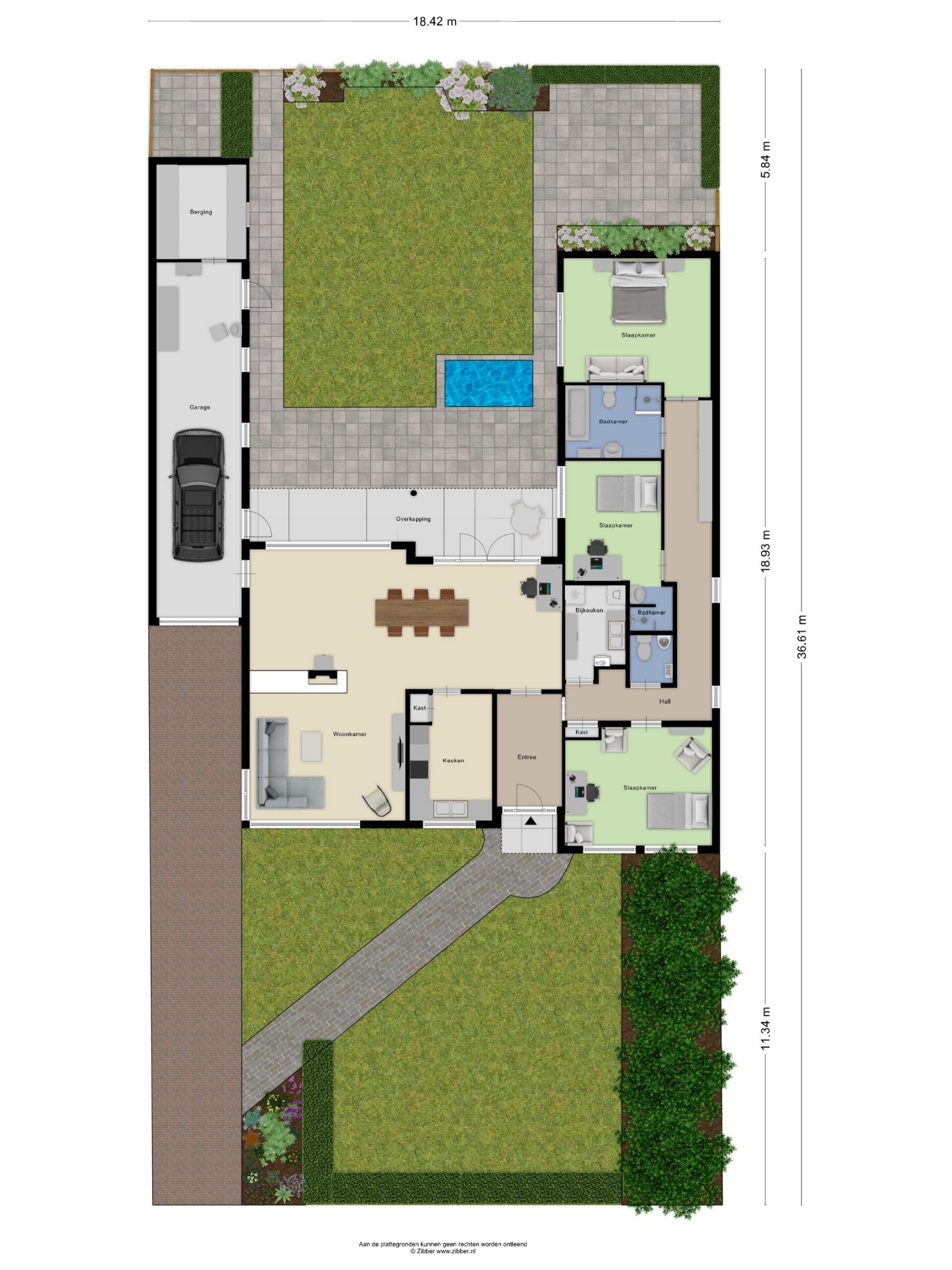 -Grote, inpandig bereikbare garage waar met gemak 2 auto’s in geparkeerd kunnen worden, maar welke tevens mogelijkheden biedt voor een 2e slaapvleugel met een 4e slaapkamer met badkamer.