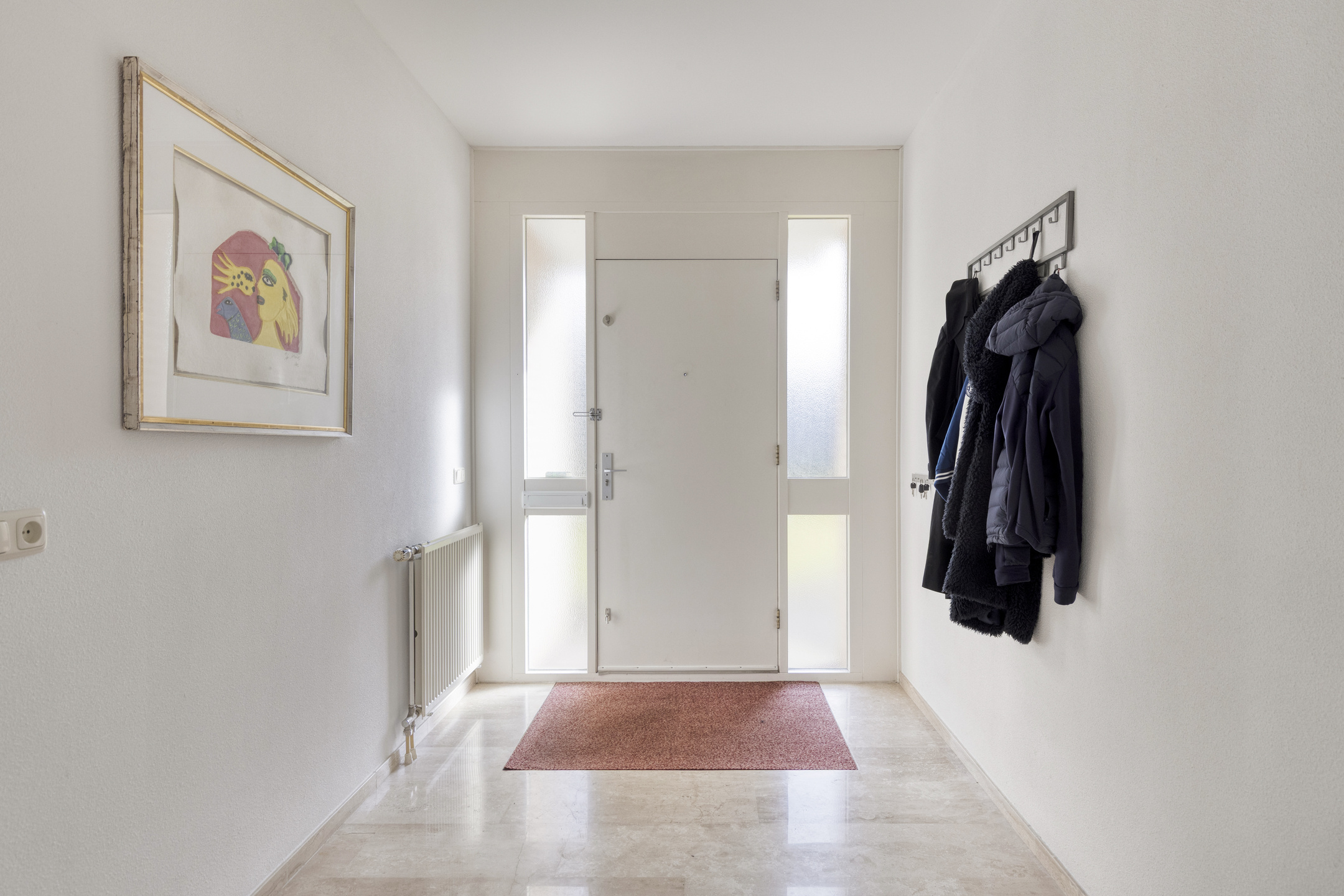 U komt binnen in de ontvangsthal met aansluitend de hal naar de slaapvleugel.