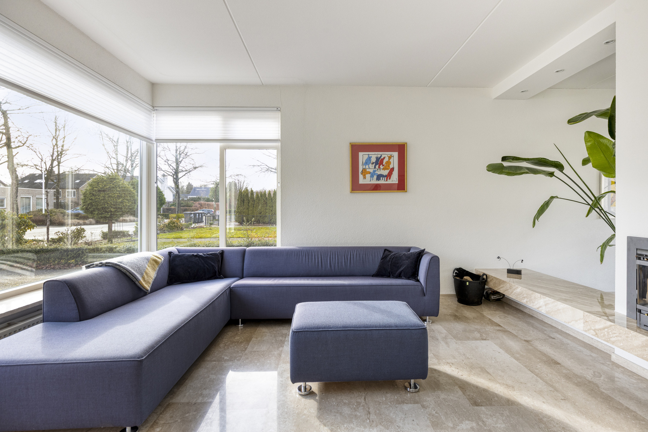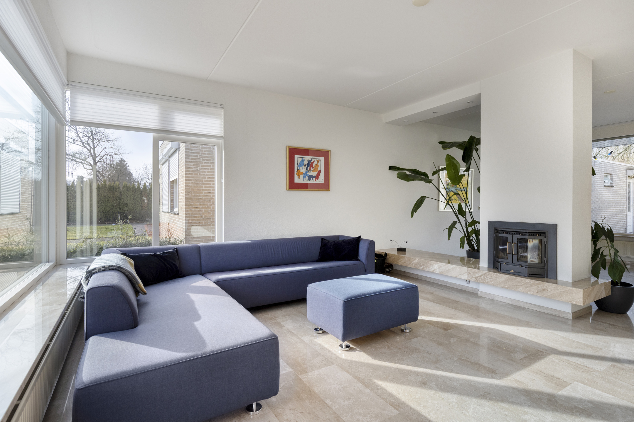 Een zeer ruim opgezette woonkamer met een afgescheiden zithoek door middel van de houthaard. Door de grote raampartijen kijkt u mooi weg over de achtertuin en geniet deze woonkamer van veel natuurlijke lichtinval. Vanuit de woonkamer is de garage inpandig bereikbaar.