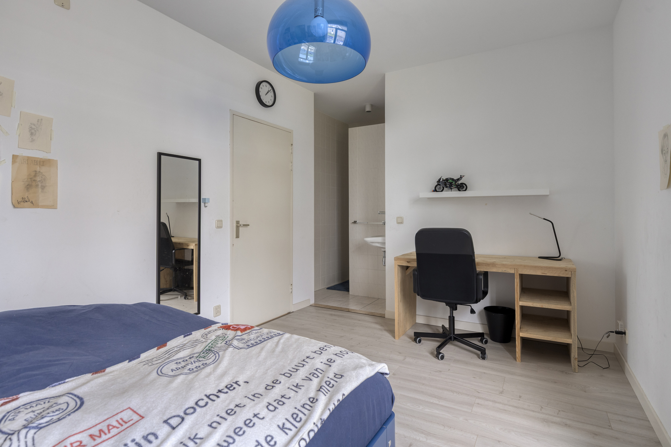 Slaapkamer 2 is een ruime kamer met en suite een wastafel en douche.