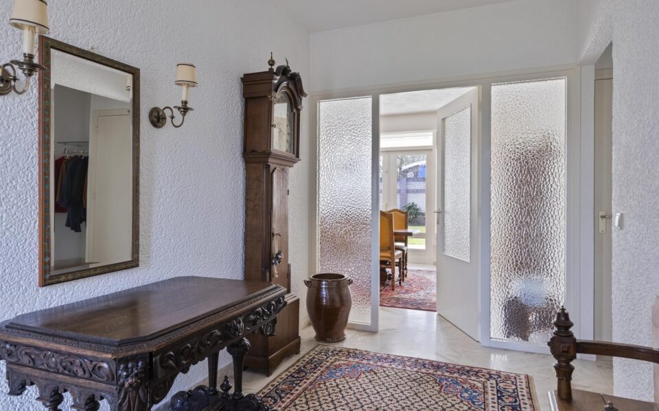 U komt binnen in de ontvangsthal met garderobe en meterkast.